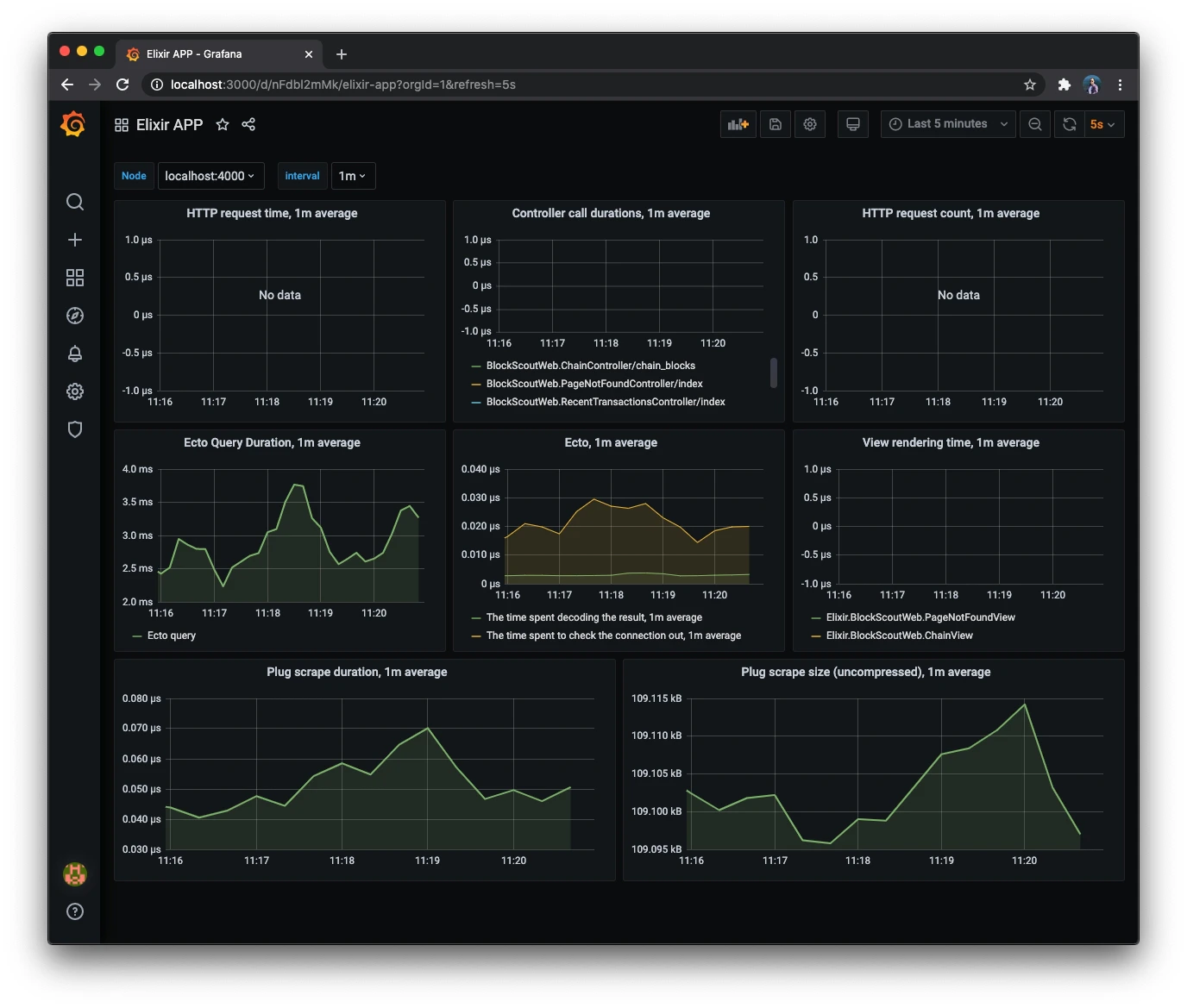 BlockScout is setup to export Prometheus metrics at/metrics.