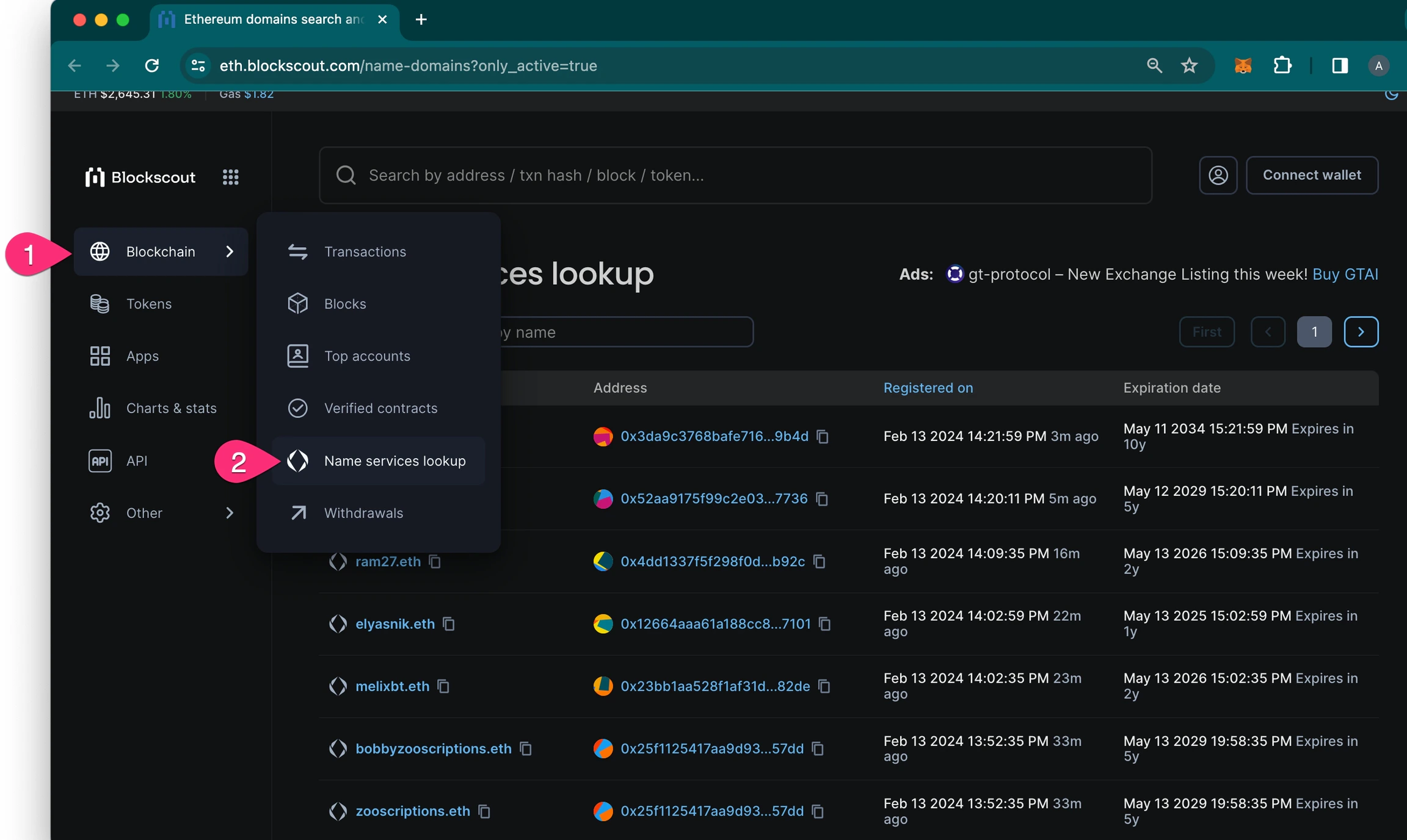 - Submit a PR to the blockscout-rs repository (hosted version) or integrate with your Blockscout fork. a. Example PR for BNS (Base Name Service)