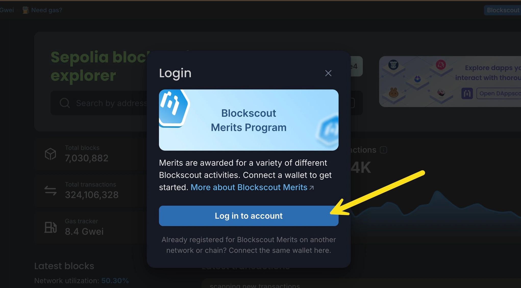- You must login to Merits on Blockscout to see your balance and claim additional Merits.